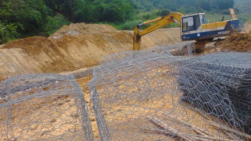 格賓石籠可用于堤岸防護,或者對整個河床及河岸進行防護,上部為護坡工程,下部為護腳工程,比較適合原始岸坡較緩的河道。以設(shè)計枯水位為界,護坡工程是對原始岸坡進行修整處理后再鋪設(shè)護坡反濾層及生格賓石籠網(wǎng)墊結(jié)構(gòu)面層,以防止水流沖刷、波浪沖擊、水位變化和地下水外滲侵蝕等對岸坡表面的破壞;格賓石籠護腳工程則采用抗沖材料鋪設(shè)于坡腳附近水下河床,形成保護層,防止水流淘刷,達到保護堤岸根基的目的。格賓石籠的優(yōu)點是生態(tài)性,其內(nèi)部充填的是天然石料,石料之間有間隙,允許植物在其中生長,還可以有針對性地播種合適的植物,具有工程護坡與植物護坡的雙重功效。