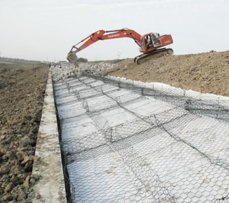 雷諾護墊也叫石籠護墊,格賓護墊,是指由機編雙絞合六邊形金屬網面構成的厚度遠小于長度和寬度的墊形工程構件。雷諾護墊中裝入塊石