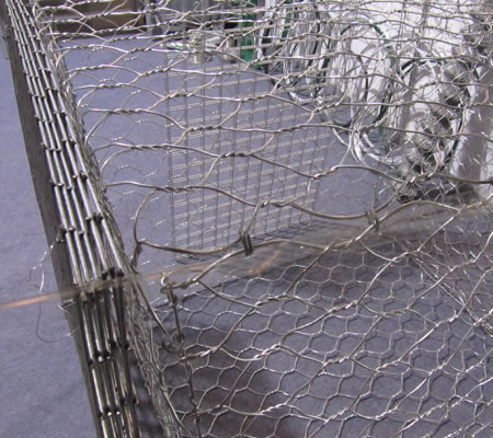 五絞石籠網為*次成型生產,除蓋板外,邊板,端板,及底板間不可分割。